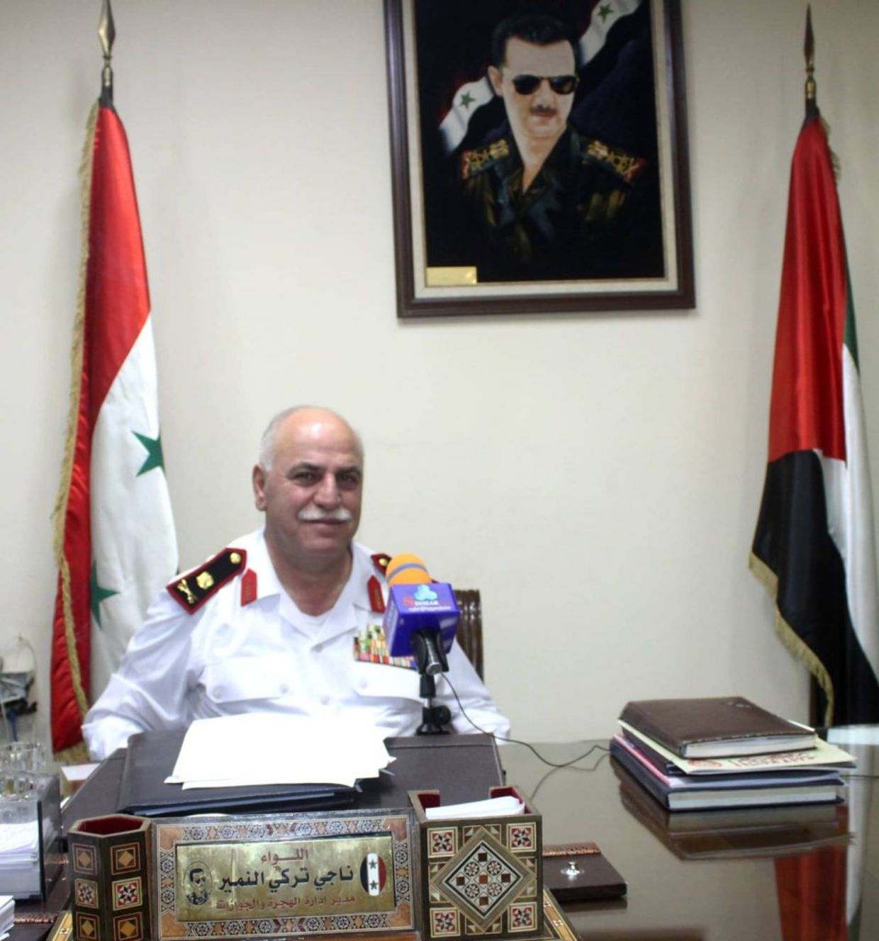The Minister of Interior, who is directly responsible for managing immigration and the official supervising Major General Namir, is Major General Muhammad Khaled Rahmoun, who is responsible for war crimes and crimes against humanity, including torture, enforced disappearance, and the use of chemical weapons.